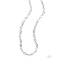 Alternating along the neckline, a collection of high-sheen oval silver links connect to infinity-like silver twists for a suave self-asserting statement. Features an adjustable clasp closure.