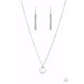 Encased in a sleek silver frame, a white shell-like disc swings from the bottom of a dainty silver chain below the collar for a minimalist inspired fashion. Features an adjustable clasp closure. As the stone elements in this piece are natural, some color variation is normal.