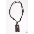 Raised pyramidal beading is stacked vertically across a leather pendant for an urban look. Features an adjustable sliding knot closure.