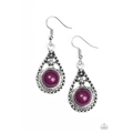 A vivacious purple bead is pressed into the center of a studded silver teardrop for a seasonal look. Earring attaches to a standard fishhook fitting.