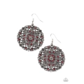 Dotted with glittery red rhinestones and dainty silver flowers, antiqued filigree whirls into a whimsical frame for a colorful look. Earring attaches to a standard fishhook fitting.