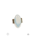 Featuring a dewy iridescence, an oversized white opal bead sits atop a sleek brass frame for an ethereally rustic fashion. Features a stretchy band for a flexible fit.