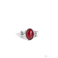 An opalescent Fire Whirl bead is pressed into a sleek silver fitting atop layered silver bands, resulting in an enchanting pop of color atop the finger. Features a dainty stretchy band for a flexible fit.