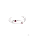 A pair of Pale Rosette and Fuchsia Fedora rhinestones sporadically adorn a layered silver cuff, creating a dainty dazzle around the wrist.