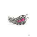 Adorned with bubbly Fuchsia Fedora beads, a silver teardrop studded paisley-like frame is set atop a wavy silver cuff for a vivacious pop of color around the wrist.