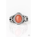 A tranquil Burnt Orange stone is pressed into the center of a studded silver band for a seasonal look. Features a dainty stretchy band for a flexible fit.
