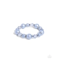 Infused along an elastic stretchy band, faceted Chambray Blue beads in various opacities and shimmer alternate with rhinestone-encrusted and high-sheen silver discs in a capricious pattern around the wrist.