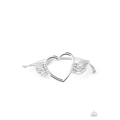Layers of gray cords delicately knot around an oversized silver heart charm, creating a whimsical centerpiece around the wrist. Features an adjustable sliding knot closure.