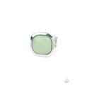 An oversized Green Ash bead is pressed into the center of a square silver frame, creating a powerful pop of color atop the finger. Features a stretchy band for a flexible fit.