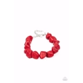 A collection of imperfect red stones are threaded along an invisible wire around the wrist, creating an earthy centerpiece. Features an adjustable clasp closure.