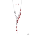 Featuring an array of shapes and cuts, a collection of faceted smoky gems link below the collar for a glamorous shimmer. A shimmery silver strand of pearly red beads trickles down one side of the piece, creating a flirtatious extended pendant. Features an adjustable clasp closure.