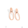 An asymmetrical copper oval hinges from the bottom of a spherical copper oval fitting, resulting in a radiant lure. Earring attaches to a standard clip-on fitting.