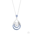 Dipped in light sapphire rhinestones, the bottoms of teardrop silver hoops layer and swing from the bottom of a light sapphire rhinestone-encrusted fitting. A glossy half-pearl is nestled along the bottom of the uppermost hoop, adding a refined finish to the hypnotizing pendant. Features an adjustable clasp closure.