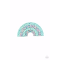 Iridescent rows of glittery blue and multicolored confetti-like sparkles alternate into a glittery rainbow. Features a standard hair clip on the back.