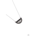 Encrusted in glittery black rhinestones, a hammered silver half moon pendant is horizontally suspended at the bottom of a dainty silver chain for an edgy glamour. Features an adjustable clasp closure.