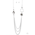 A mismatched collection of oversized silver beads, hoops, and textured silver accents give way to layers of antiqued silver chains down the chest for an edgy industrial look. Features an adjustable clasp closure.