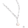 Attached to a classic silver chain, silver horizontal links lead the eye down to a multicolored rhinestone-encrusted teardrop pearl for a refined statement. Features an adjustable clasp closure.