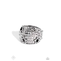 Row after row of incandescent white rhinestones stack into a dazzling display across a beveled silver band. Silver star silhouettes haphazardly dot across the dazzling surface, creating a commanding statement piece. Features a stretchy band for a flexible fit.