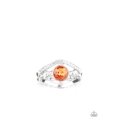 A white rhinestone encrusted band and glistening silver band wave around a radiating orange and white rhinestone center for a refined look. Features a dainty stretchy band for a flexible fit.