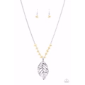 An airy lifelike silver leaf swings from the bottom of a yellow stone dotted chain, creating a colorful seasonal pendant. Features an adjustable clasp closure.