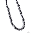 Featuring dainty silver beads that are rippling with ribbed textures, black suede cords decoratively braid and weave below the collar for an urban flair. Features a button loop closure.