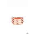 Brushed in a high-sheen finish, ribbed shiny copper bands stack across the finger for an edgy industrial look. Features a stretchy band for a flexible fit.