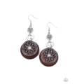 Reminiscent of an eclipse, an airy silver ring radiating with ornate petals, sways in front of a brown shell-like disc. Silver rings in graduating sizes cascade from the top for a whimsically nautical look. Earring attaches to a standard fishhook fitting.