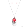 Swinging from the bottom of a lengthened silver chain, a dramatic red stone gives way to an ornate crescent shaped frame dotted with a dainty red stone. Brushed in an antiqued shimmer, flared silver bars swing from the bottom of the dramatic pendant, adding a playful movement to the seasonal palette. Features an adjustable clasp closure.