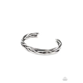 Brushed in an antiqued finish, rustic silver bars weave and braid into an edgy cuff around the wrist.