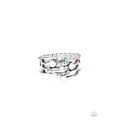 Dotted in faceted Mosaic Blue and white beads, dainty silver bands stack across the finger, creating a whimsically layered frame. Features a stretchy band for a flexible fit.