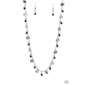 Infused along a dainty silver chain, duos of black seed beads alternate with warped, layered silver discs to make a colorful, sand-dollar-like statement down the neckline. Features an adjustable clasp closure.