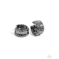 Featuring crimp-like texture, folds of gunmetal stack and wave along the ear for a sassy sinuous display. Earring attaches to a standard hinge closure fitting. Hoop measures approximately 1" in diameter.