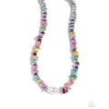 Featuring a reflective sheen, chiseled multicolored stones and silver beads alternate along the neckline for a seasonal statement. A baroque white pearl is infused along the center of the design for additional attention-grabbing detail. Features an adjustable clasp closure. As the stone elements in this piece are natural, some color variation is normal.
