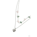 Threaded along a silver satellite chain, chiseled jade and rose quartz stones fall along the collar in a grounded pattern. A delicate silver ball chain featuring a dangling silver pendant with compass details and a peachy center layers with the earthy stones for a wanderlust combo. Features an adjustable clasp closure. As the stone elements in this piece are natural, some color variation is normal.