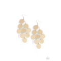 A bubbly collection of oversized gold and iridescent sequins cascade from the ear, creating a flirty holographic fringe. Earring attaches to a standard fishhook fitting.