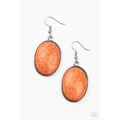 Chiseled into a serene oval, a refreshing orange stone is pressed into a sleek silver frame for a seasonal flair. Earring attaches to a standard fishhook fitting.