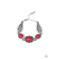 Embossed in whimsical filigree, ornate silver frames link with a collection of fiery red stone frames around the wrist for a seasonal flair. Features an adjustable clasp closure.
