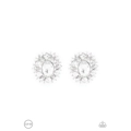 Varying in size, glittery white rhinestones and ornate silver accents burst from a dramatic white gem center for a stellar look. Earring attaches to a standard clip-on fitting.