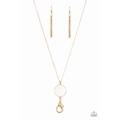 A flat shell-like pendant swings from the bottom of a dainty gold chain for a refined look. A lobster clasp hangs from the bottom of the design to allow a name badge or other item to be attached. Features an adjustable clasp closure.