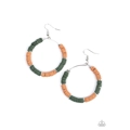 Infused with dainty silver accents, an earthy collection of rubbery green and brown discs are threaded along a dainty silver wire hoop for a colorful look. Earring attaches to a standard fishhook fitting.