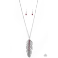 Glittery red rhinestones are encrusted down the spine of a life-like silver feather. The whimsical pendant swings from the bottom of a lengthened silver chain for a seasonal look. Features an adjustable clasp closure.