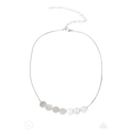 Featuring shimmery scratched surfaces, a glimmering collection of dainty silver discs are fitted in place along a silver snake chain around the neck for a sleek finish. Features an adjustable clasp closure.
