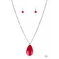 A robust red teardrop pendant swings from the bottom of a lengthened silver chain, adding a perfect pop of color to any outfit. Features an adjustable clasp closure.