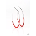 As if dipped in paint, the bottom of an asymmetrical silver hoop has been glazed in a shiny red finish for a colorful finish. Earring attaches to a standard post fitting. Hoop measures 1 3/4" in diameter.