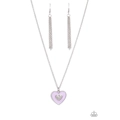 Painted in a shimmery lavender finish, a silver heart swings from the bottom of a dainty silver chain below the collar for a charming finish. Featured in the center of the purple backdrop, a smaller heart, bedazzled with dainty white rhinestones, adds a spritz of glitz to the romantic design. Features an adjustable clasp closure.