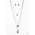 Infused with mismatched red beading, a shimmery silver feather charm and decorative eagle pendant layer down the chest for a colorful Southwestern inspired look. Features an adjustable clasp closure.