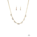A collection of glassy white rhinestones coalesce into glittery golden frames as they link below the collar for a timeless shimmer. Features an adjustable clasp.
