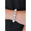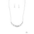 Threaded along an invisible wire, dainty silver pearls give way to an alternating collection of larger silver pearls and white rhinestone encrusted rings below the collar for a timeless sparkle. Features an adjustable clasp closure.