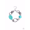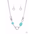 An artfully mismatched assortment of oversized silver links and geometric turquoise stone beads delicately interlocks around the neck below the collar for a desert inspired theme. Features an adjustable clasp closure.