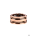 Featuring a double row of metallic rope-like patterns, a thick copper band curls around the finger for a rustic look. Features a stretchy band for a flexible fit.